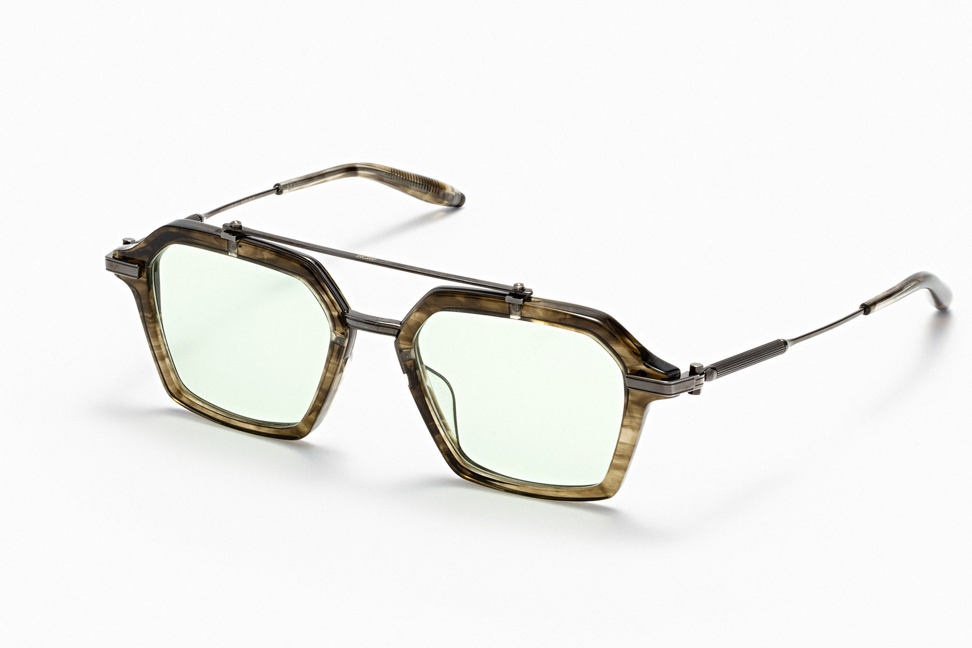 Display Name: Akari – Green Tortoise Swirl/Black Rhodium