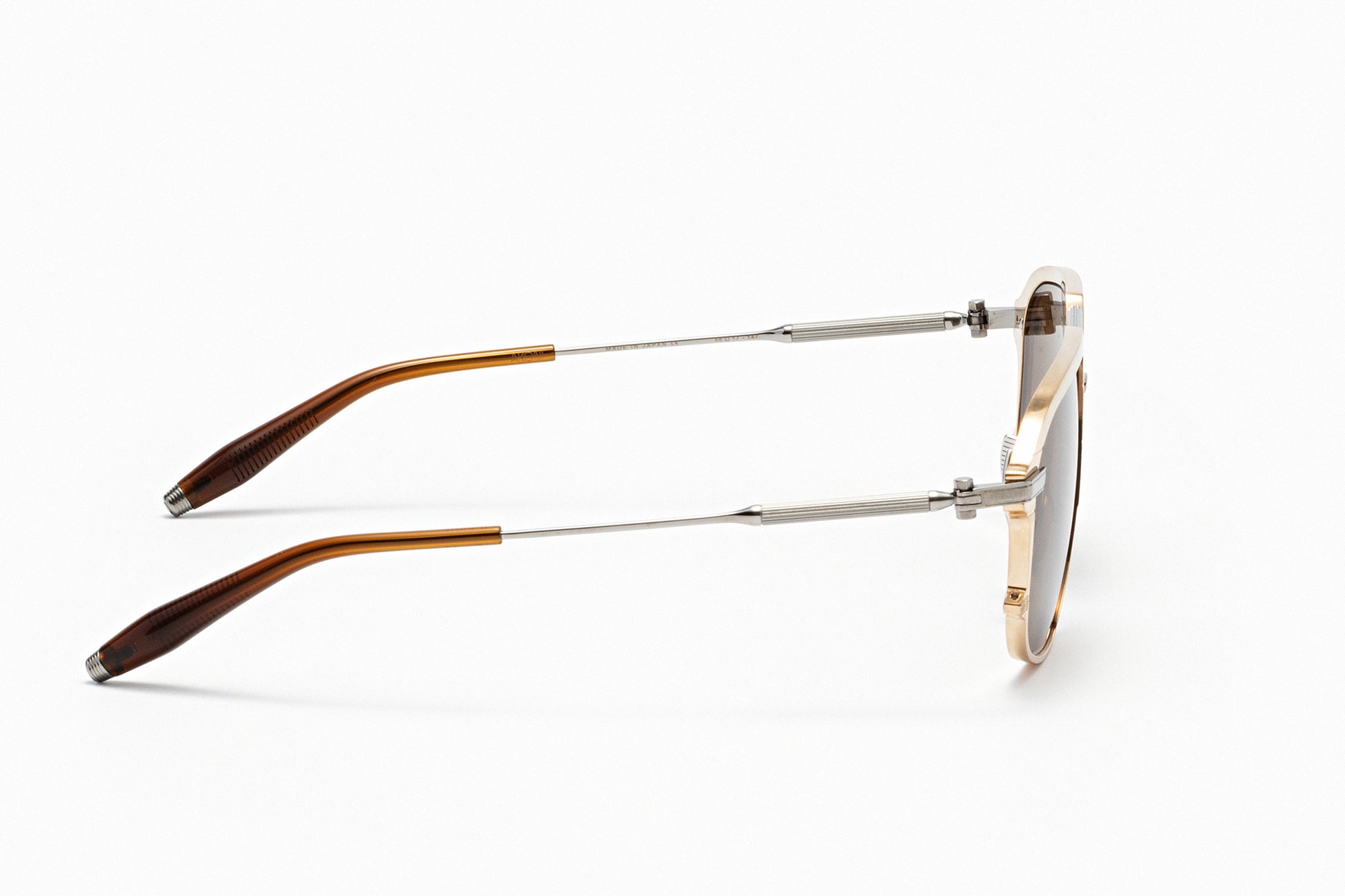 It may share a name with a classic cautionary tale, but Akoni’s Icarus refuses to clip its wings. The design was inspired by the brilliant engineering solution of architects Richard Rogers and Renzo Piano, whose revolutionary plans for the Pompidou Museum highlighted components that are traditionally hidden within structures. That’s why this frame spotlights perfectly formed components that are more typically concealed. In addition, signature brand embellishments—recalling finishing touches that set apart luxury pens and lighters—also surprise, with their unexpected placements.