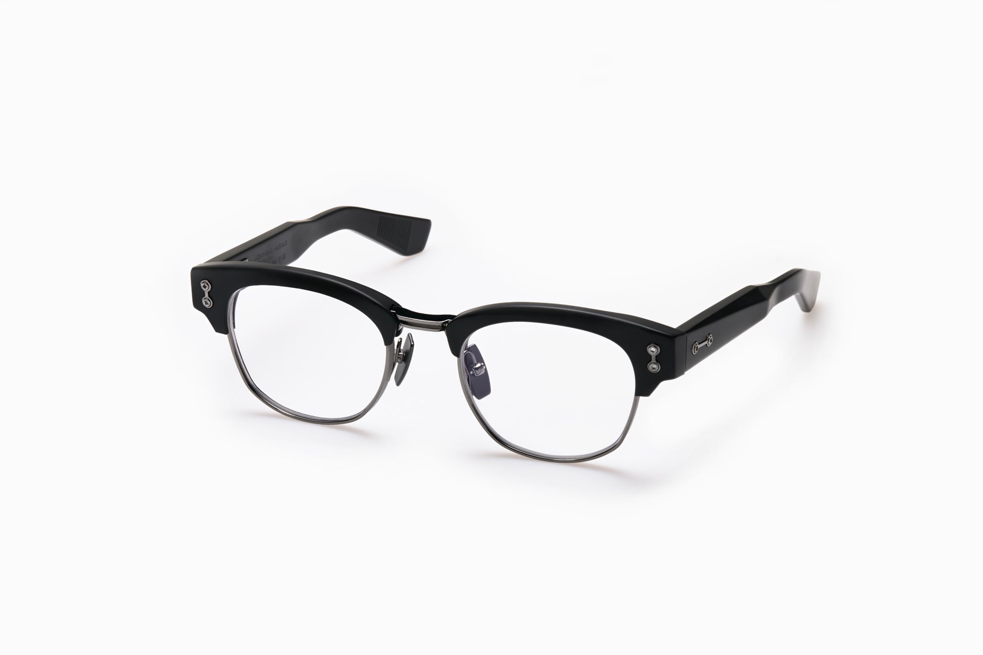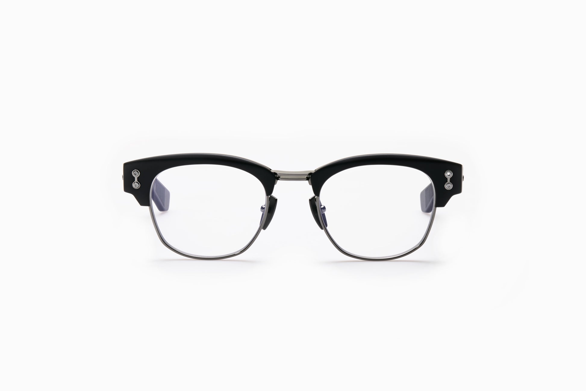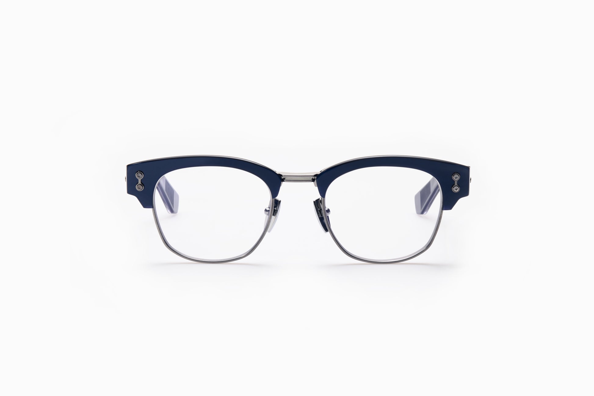 The Newton frame from Collection VIII is a compelling reinterpretation of the iconic optical Clubmaster shape, designed to make a lasting impression. This unisex frame combines classic sophistication with a masculine twist, making it an essential piece within any eyewear collection. The design features a striking contrast between the thick, edgy acetate temples and the robust titanium eye rim, which is notably thicker than typical designs. This substantial titanium is enhanced by knurled pressed lines, a detail echoed in the acetate temple cores, adding a layer of texture and refinement. The Newton frame’s bold aesthetic is further defined by its prominent acetate eyebrow and temples, offering a modern touch while maintaining a strong appeal. The nose bridge features two parallel titanium elements, a nod to Akoni Copernico design, emphasizing its iconic status. Additionally, the laminated temples with a skeleton metal core provide enhanced structural integrity and perimeter, ensuring both durability and a striking visual impact.
