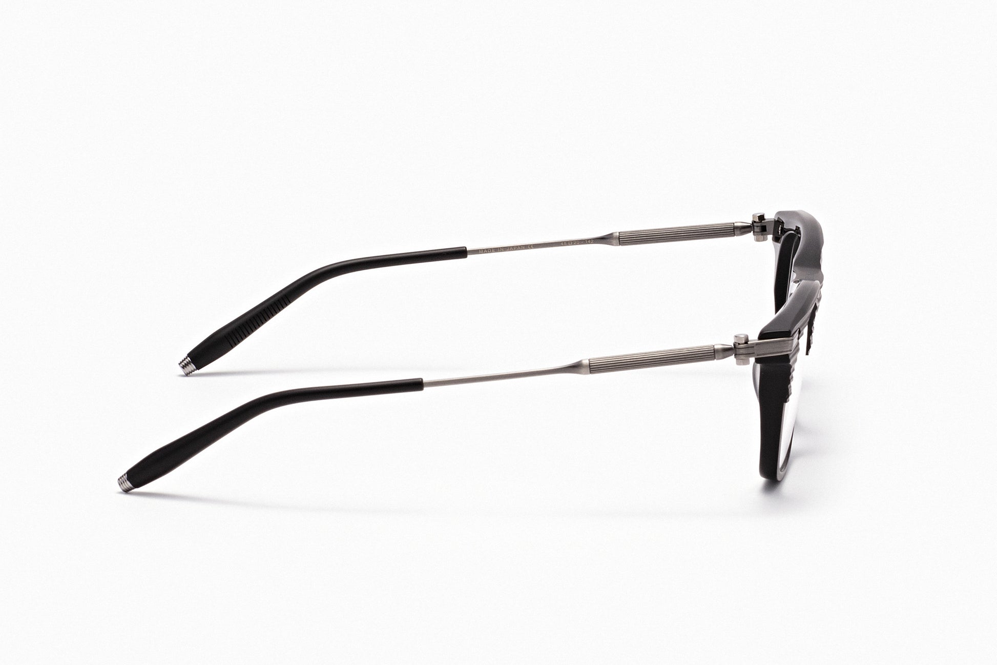 Zenith's intellectual vibe—relying on classic lines and squared-off lenses—is perfectly complemented by impressive and precise handiwork. The Japanese acetate of the sleek frame front has been expertly embellished by Japan’s finest craftsmen, resulting in an original and eye-catching tactile pattern made up of subtle, organic and repeating lines. This blend of cerebral style and Japanese craft perfectly reflects Akoni’s distinctive philosophy.