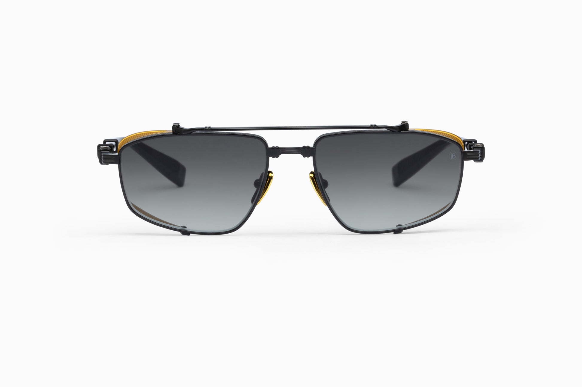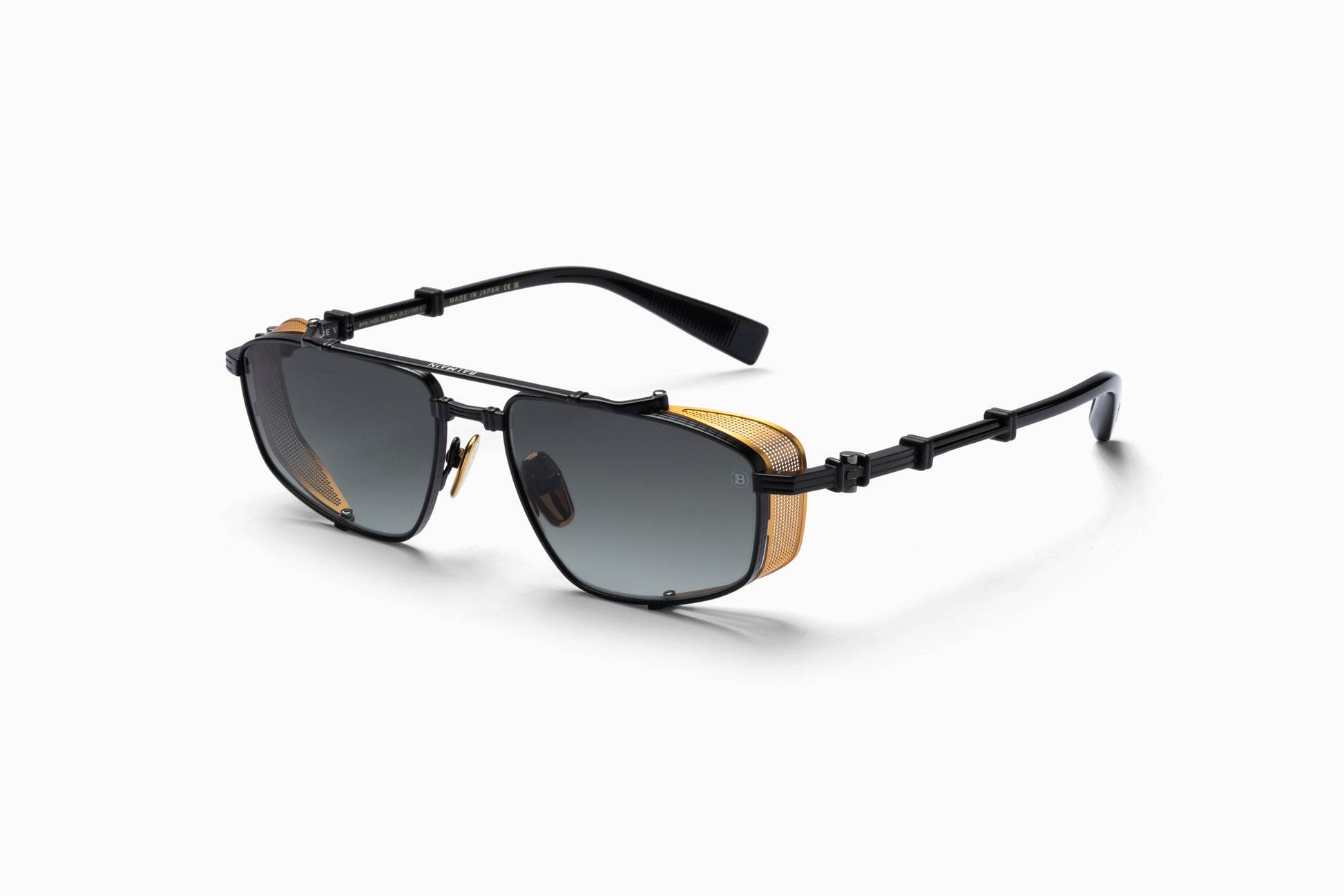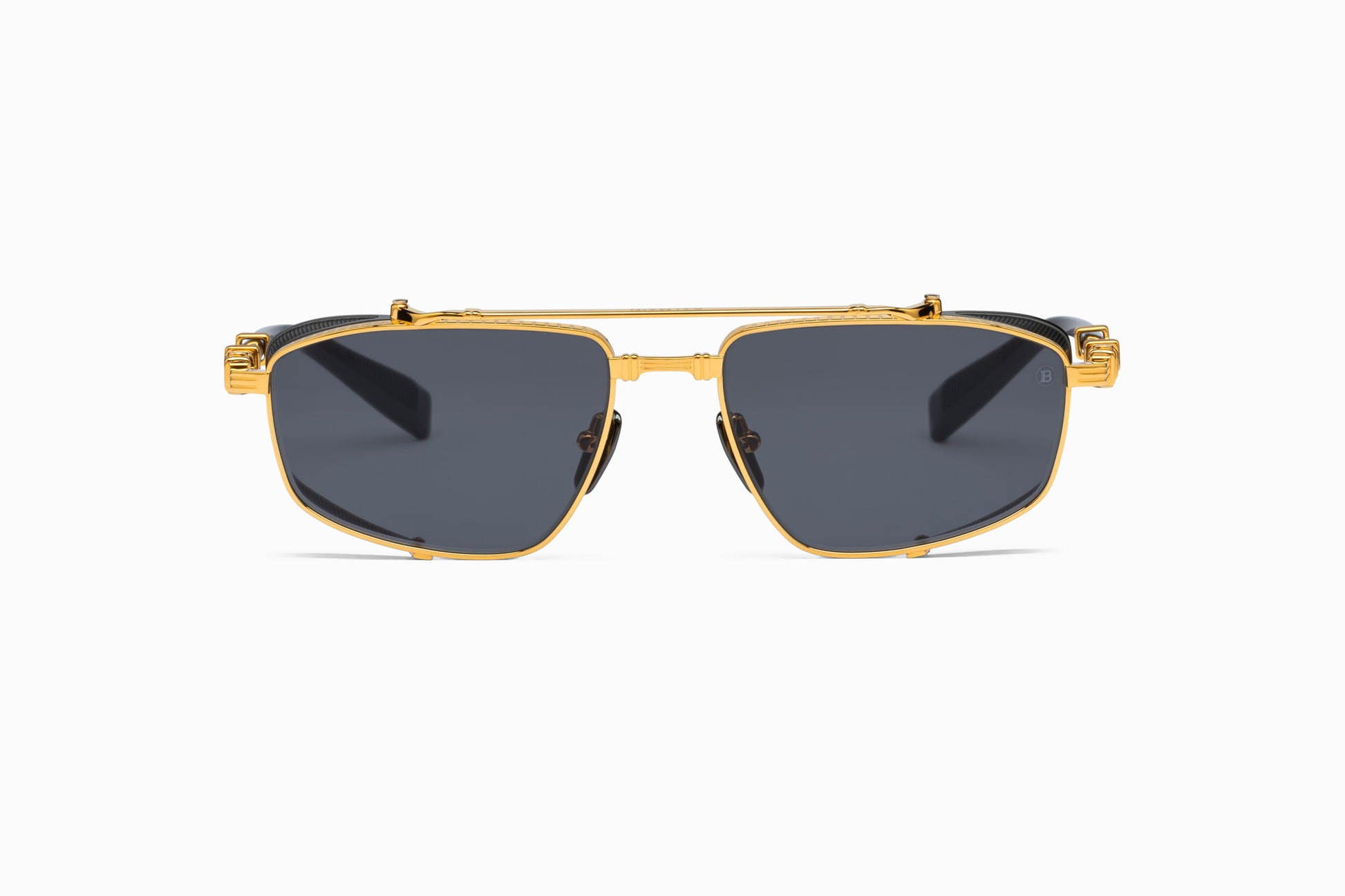 For the upcoming season, Brigade’s distinctive silhouette has been slightly narrowed and squared, with edgy, sharp detail helping to emphasize the dynamic aviator front and its distinctive double bridge. Brigade’s lines continue to meld together several of Olivier Rousteing’s most popular fashion-week runway themes—including an ‘80s pop-star spirit, classic French military stylings, and the most rebellious of biker attitudes. The signature luxury titanium temples and the patterned side cups underline Balmain’s origins, helping to make it very clear that the historic house will always demand the sublimity of each and every luxury embellishment. Handmade in Japan.
