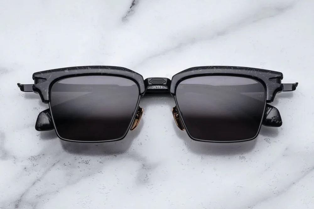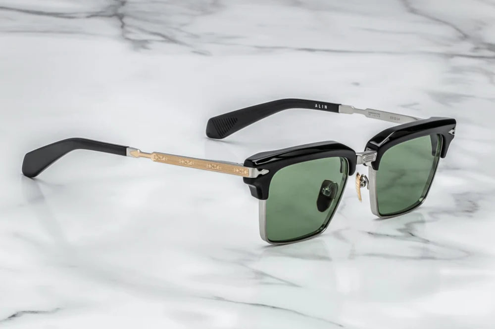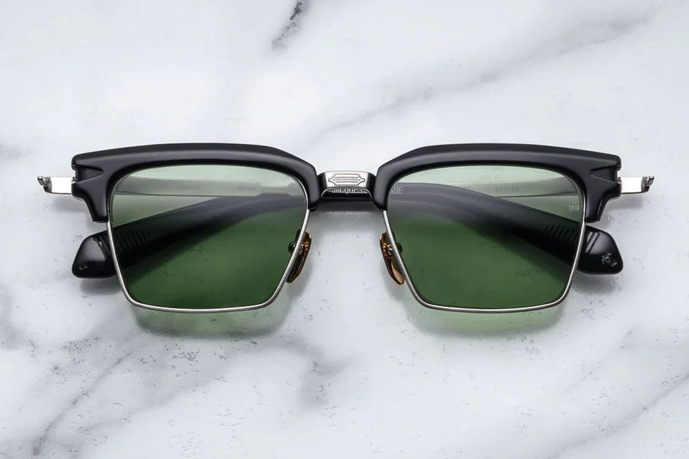 Classic '50s-inspired combo spectacles with prominent acetate brow, square titanium lens shape, our signature arrowhead monoblock hinge, and finely engraved temples with a unique arrowhead motif. A serious and sophisticated spectacle of the highest caliber, these classic ‘50s-inspired spectacles are a stoic combination of craft and ambition, featuring a prominent acetate brow with a sleek titanium lens rim, and finely engraved temples with a unique arrowhead transition.