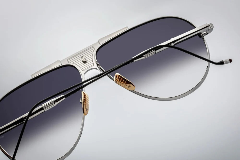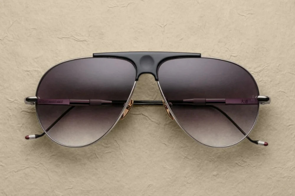 The first titanium expression to emerge from the KYOSHO series, these limited-edition aviators with deep teardrop lenses and extendable temples feature a unique bridge with an elegant circular depression, Art Deco-inspired hairline details, and our brand insignia. Follow your wandering, world-wise gaze beyond what persists and uncover all the potent possibilities that may (or may not) exist.