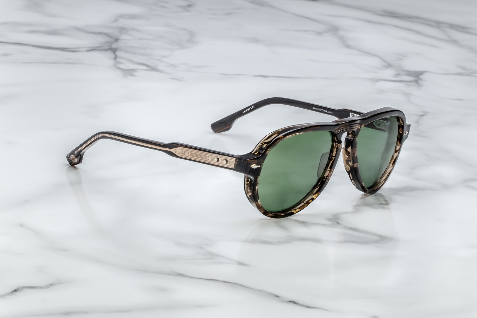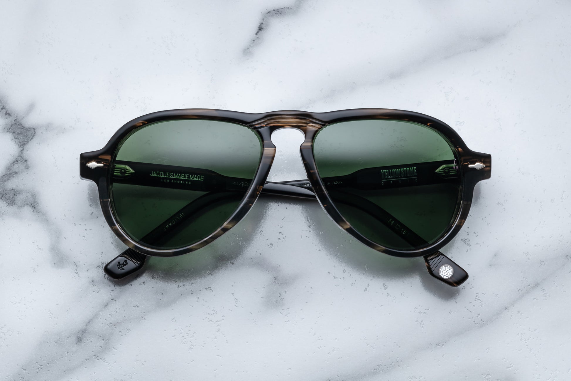 Whether exploring the riparian woodlands or winding your way through aspen thickets, get to where you need to be going in '80s-inspired aviators named after the Druid Peak Pack established in Lamar Valley, one of the largest and most famous wolf packs in Yellowstone history. Sleek and sculptural, these plant-based acetate spectacles in Taupe Tort are outfitted with polarized glass lenses in Forest Green, complimented by the signature arrowhead front pins, hinges, spur-shaped rivets, and hairline-engraved 'Spiketail' wirecores in Silver.