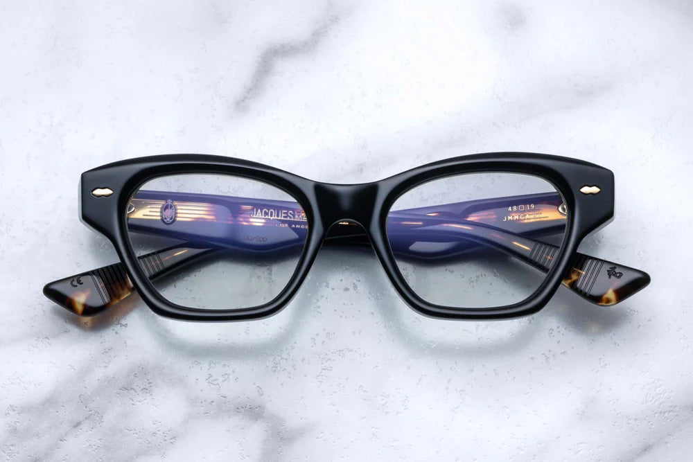 To wear Jacques Marie Mage’s Grace optical frames is like following in the footsteps of true Hollywood royalty. Ascend to the throne in these well-balanced ’50s-inspired optical frames sculpted into a classic cat eye in acetate with balanced fit and slim temples. These glasses were named after iconic actress Grace Kelly, who epitomized Golden Era glamor even before becoming the Princess of Monaco.