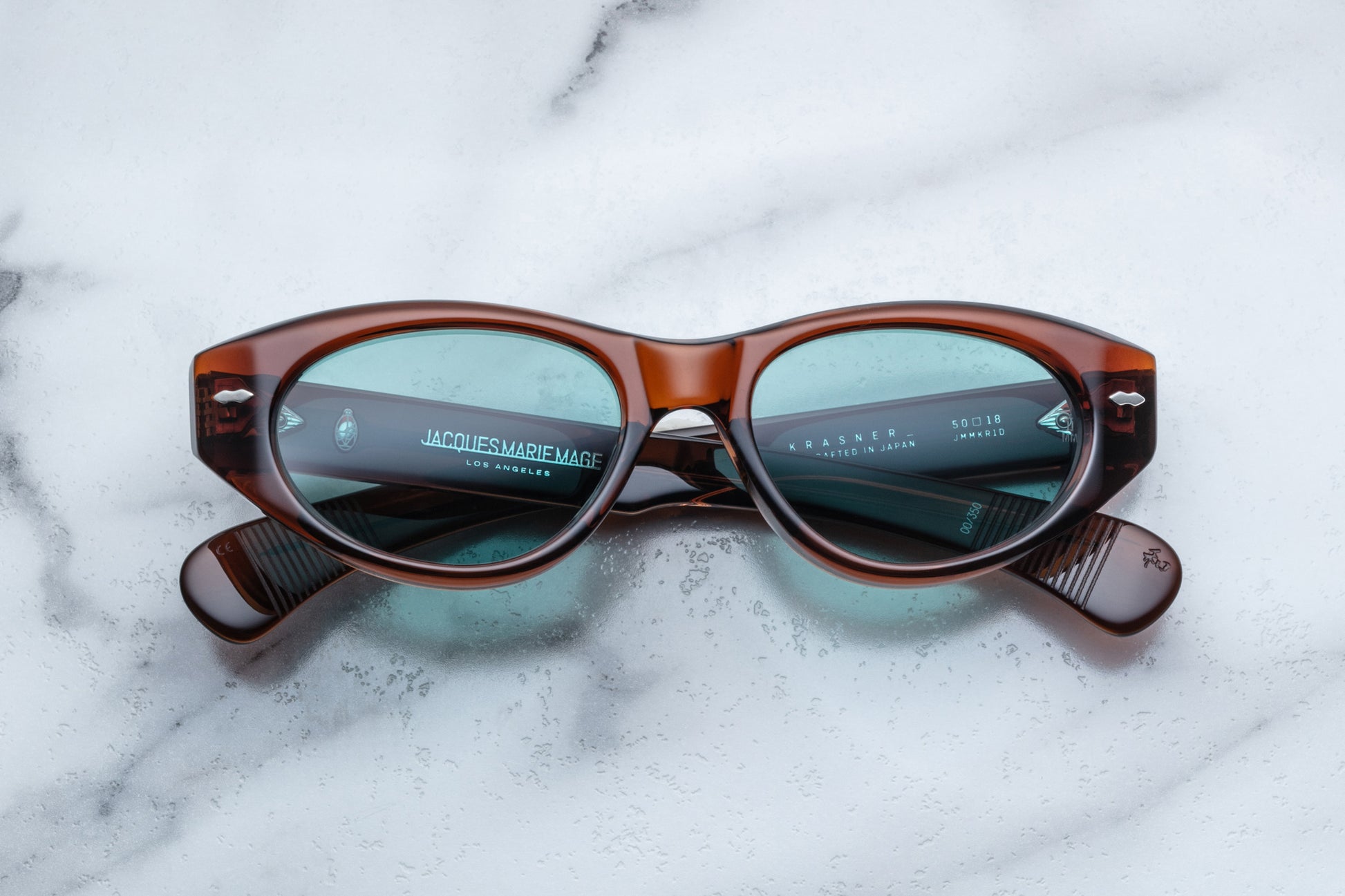 Soft, mid-size cat-eyes with oval lens shape, featuring precious metal double-arrowhead front pins and softly rounded paddle temples. The same strength and inner rhythm that flows in the decisive abstractions of America’s great modernist painters find expression here in this amalgam of timeless style and nuanced gestures, a sophisticated and self-assured depiction with an artistic predilection.