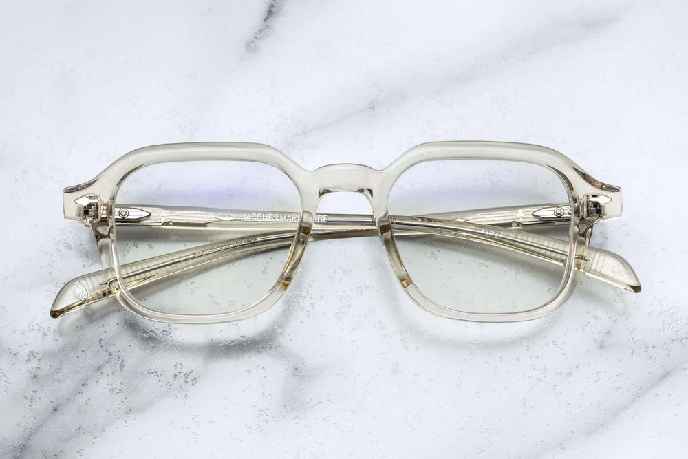 An eyeglass that screams 1970’s chic, the Wagram by Jacques Marie Mage. This spectacle comprises of a soft-edge rectangle lens coupled with a wide bridge. Made to encompass the essence of a simpler past.