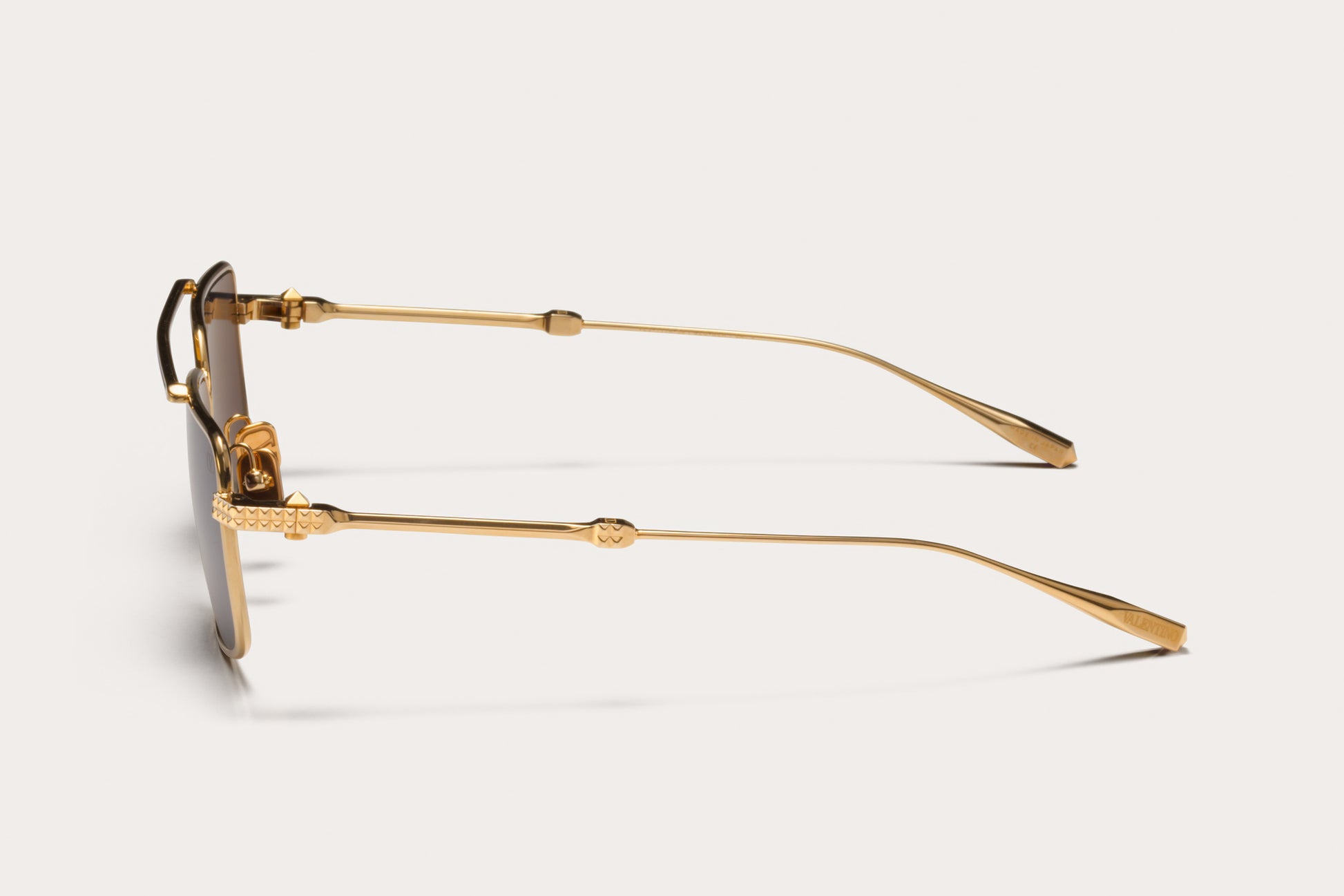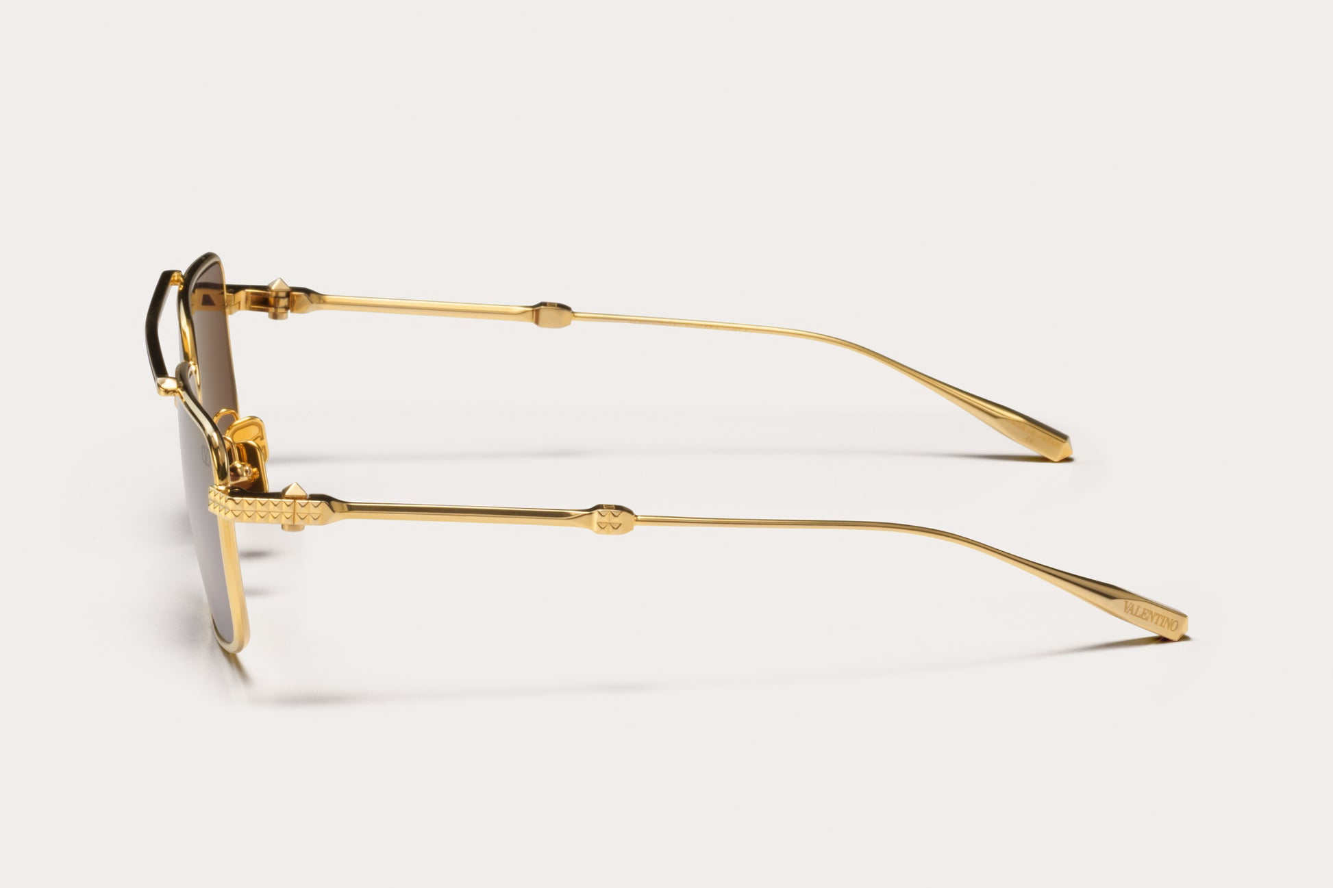 Valentino // V-Sei is an on-trend style that compliments a nearly limitless range of women’s and men’s fashion. Featuring iconic Valentino tridimensional titanium Valentino Rockstuds on its classic double bridge, elegant end-pieces and gracefully flowing temples, Valentino Sei is crafted like an exquisite piece of fine jewelry. Made in Japan of the finest Japanese titanium for timeless style, lightweight comfort, and lasting quality, other notable design elements include complex multi-faceted temples and iconic Valentino 3D titanium Rockstud temple tips, decorative enameled brow bar, custom Valentino Rockstud hinge screws, luxurious V-Logo Signature ceramic nose pads, and V-Logo Signature maker’s mark laser-etched on the left lens. Available in a color palette complementary to every skin tone, Valentino Sei celebrates the beauty of diversity. Handmade in Japan.