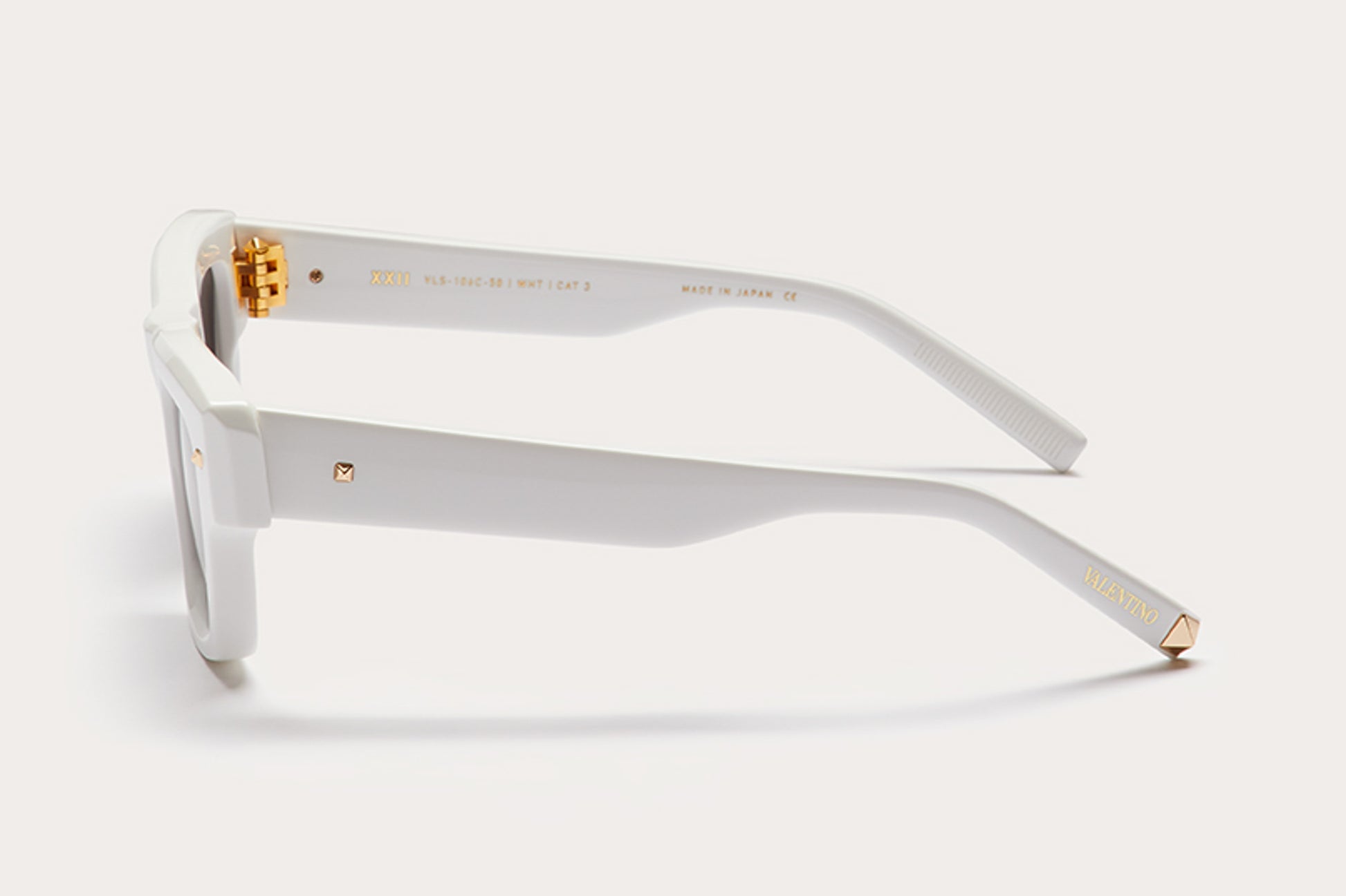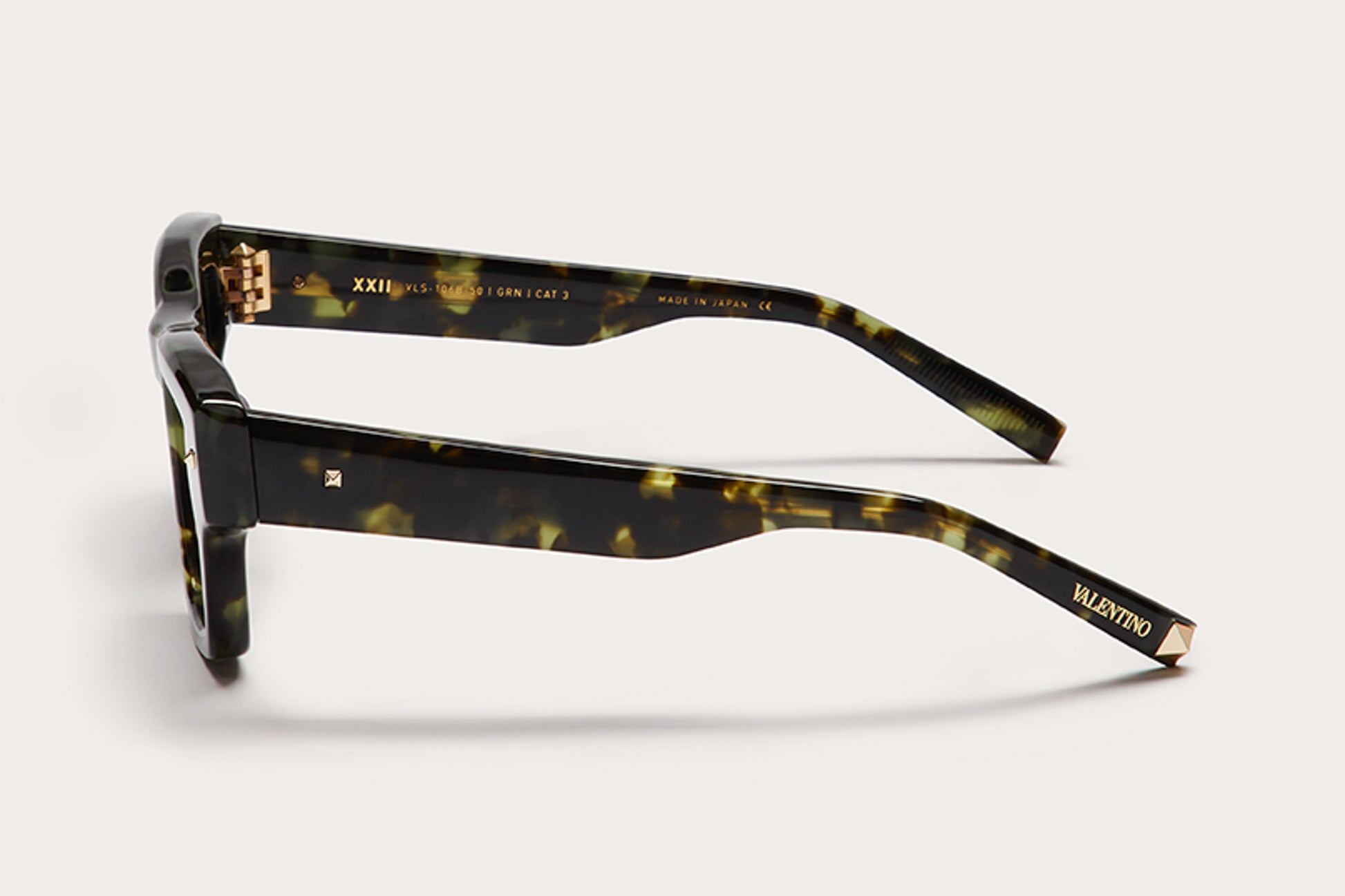 Commemorating the historic location where Creative Director Pierpaolo Piccioli creates the dreamy and graceful collections that have helped make Valentino one of the world’s most revered fashion brands, the Valentino // XXII is named for the street address of Maison’s atelier and creative headquarter in Rome. Featuring a modern interpretation of the retro 60’s Wellington shape made iconic by Golden Era Italian cinema, XXII is a bold, gender-neutral versatile accessory. Crafted using vintage-inspired colors of the finest Japanese acetate for timeless style, exceptional comfort, and lasting quality, XXII features an 8mm chunky front that’s elegantly sculpted to maximize volume and wearability. Subtle yet instantly recognizable embellishments include iconic 3D Valentino studs on the front, temples, temple tips, five-barrel hinges, custom wire core, VLogo on the left temple tip, and custom ceramic nose pads. Handmade in Japan.